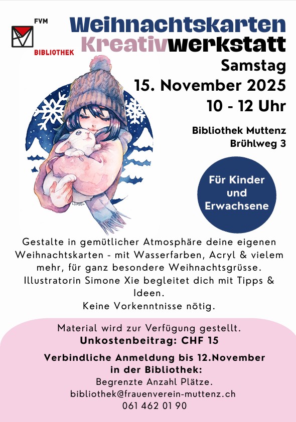 Verbindliche Anmeldung bis 12. November 2025 per Mail bibliothek@frauenverein-muttenz.ch oder in der Bibliothek.