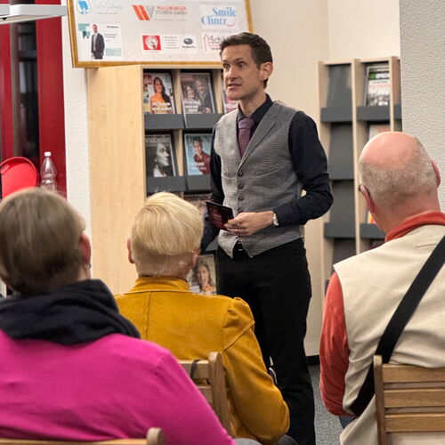 Am Freitag, 14.11.2025 fand die dritte Ausgabe von Wine & Crime mit Michael Schraner in der Bibliothek Muttenz statt. Der Andrang war gross, denn eine gute Kombination von Verbrechen und Genuss gibt es nicht so oft. Für das Publikum gab es neben spannenden Geschichten edle Tropfen vom italienischen Feinkostladen Stefanelli. Die richtige Menge Humor, genug schräge Figuren und ein guter Plot waren garantiert.
