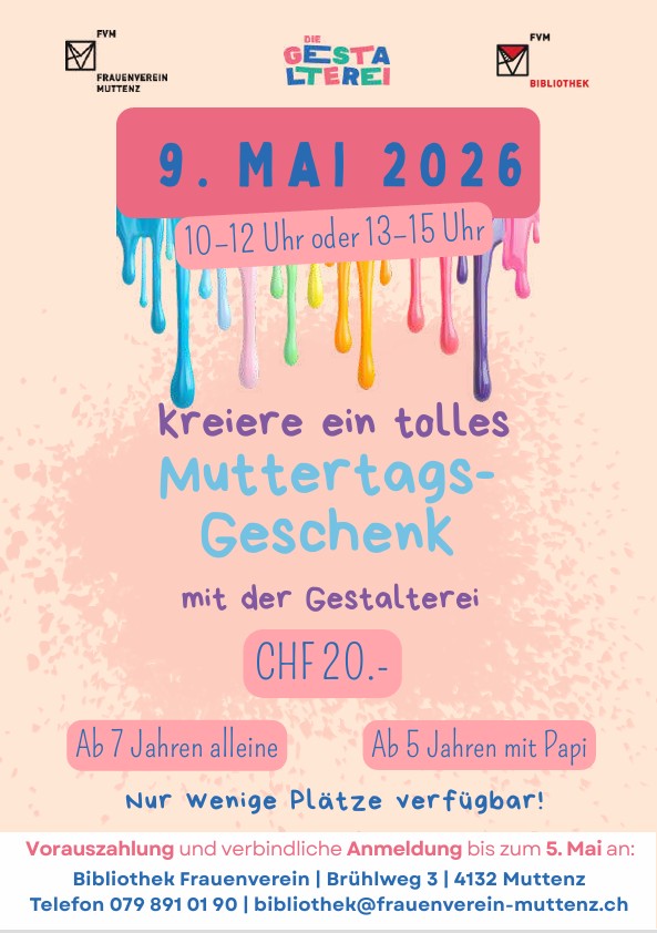 Vorauszahlung und verbindliche Anmeldung bis zum 5. Mai 2026 in der Bibliothek oder an bibliothek@frauenverein-muttenz.ch.