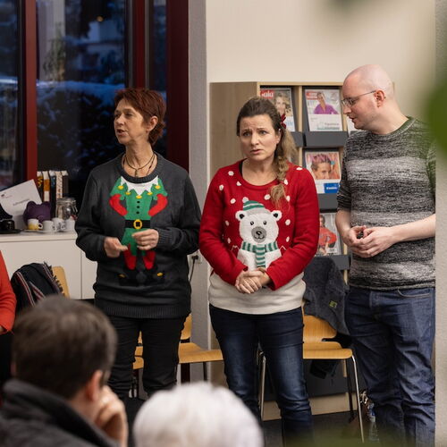 Eine wunderbare Adventslesung mit dem Basler Starautor -minu und einem a cappella Gospel Trio erlebten die 100 Gäste Anfang Dezember. Jeder Stuhl im ganzen Haus wurde dazu gebraucht, von der Brockenstube über die Büros wurde alles durchforstet, um genügend Sitzgelegenheiten zu schaffen. Es war schön zu sehen, wie viel Freude und Rührung sowohl die Lesung wie auch der musikalische Teil beim Publikum auslöste.