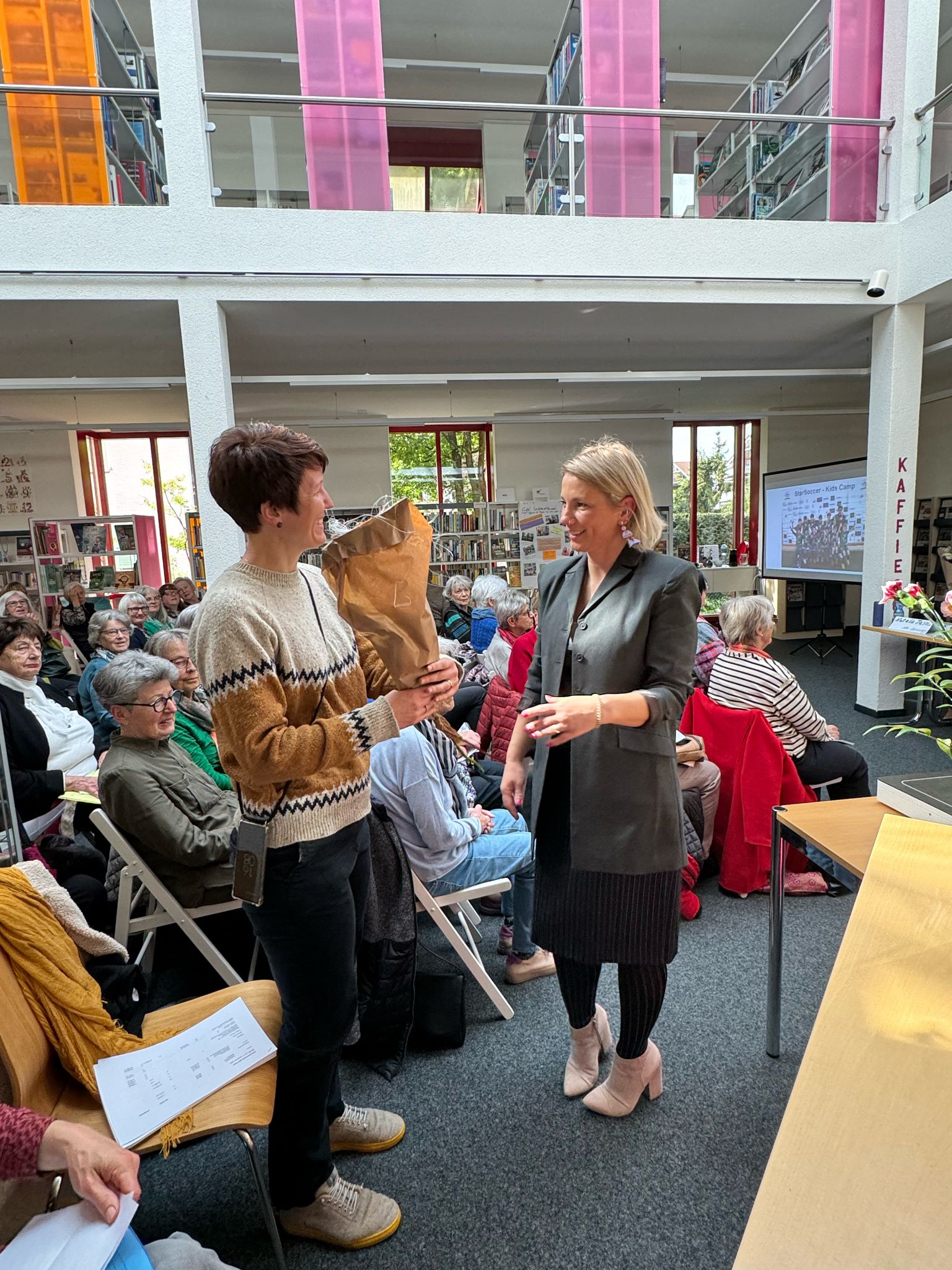 Unsere 161. Mitgliederversammlung vom Dienstag, 23. April 2024 war mit über 50 Teilnehmerinnen gut besucht. Der Vorstand präsentierte spannende Jahresberichte, zeigte kleine Filmchen, sprach über Zahlen, überreichte Blumen und lud schliesslich zu einem gemütlichen Apéro ein. Es war eine gelungene Mischung aus Rückblick und Ausblick, Abschied und Neubeginn. Vielen Dank liebe Rita Prescha und herzlich willkommen liebe Séverine Alary.