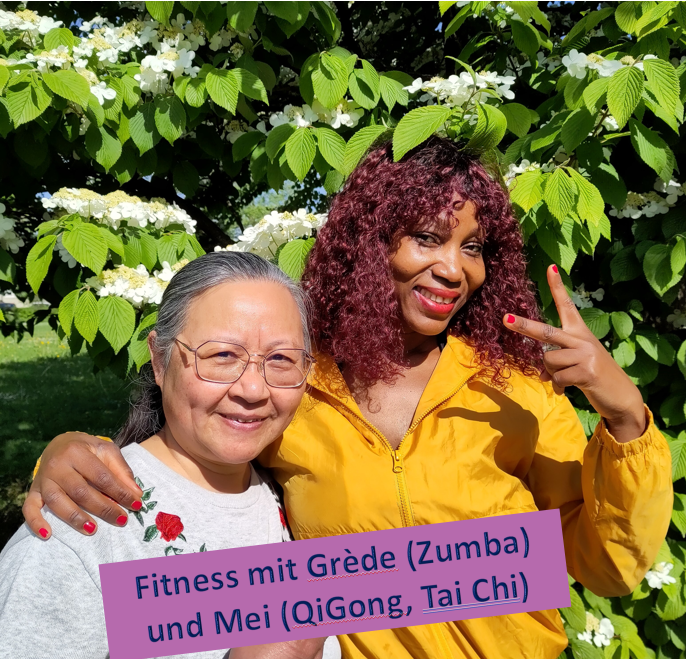 Mei und Grède führen uns entspannt durch diese Fitnessstunde mit Musik. Alle machen soviel, wie ihnen gut tut. Jede Teilnehmerin kann sich auch mit ihren Ideen als Trainerin einbringen.