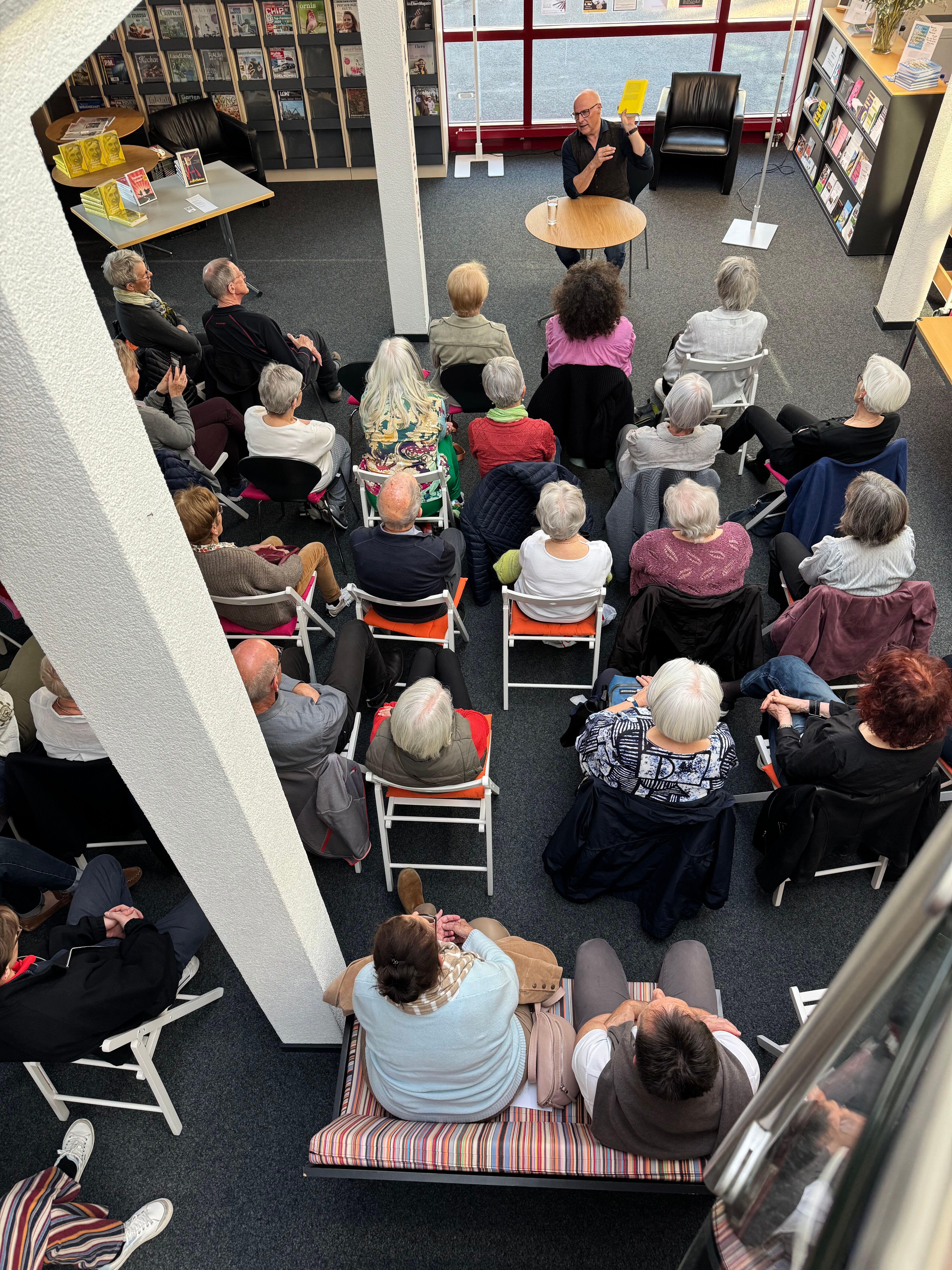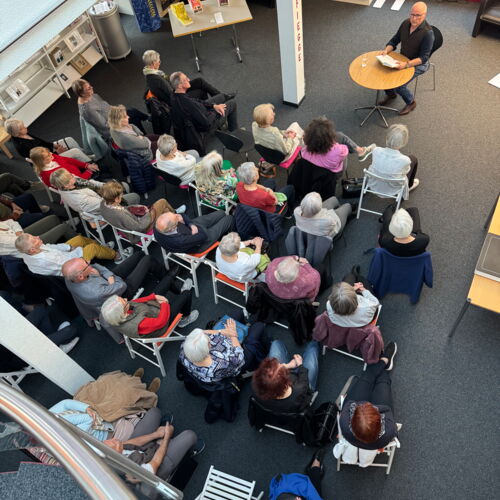 Über 40 Personen, darunter ein paar Gäste aus dem Bugatti Klub Basel, fanden sich am 8. April in der Bibliothek zu Steven Schneiders Lesung aus seinem ersten Roman Die schnellste Frau der Welt ein. Schneider steckte die Gäste sofort mit seiner Begeisterung für die junge Eliza Junek und deren Lebensabschnitt als Rennfahrerin in einer männerdominierten Welt. Viel Spannendes berichtete Steven Schneider, welcher sich für den Roman intensiv mit der Biographie der Dame auseinandersetzte. Aus dem Publikum gab es ebenfalls rege Beteiligung in Form von Fragen. Der Aperitif im Anschluss wurde dazu genutzt, um sich mit Steven Schneider über den Rennsport im Allgemeinen und die Begeisterung für schöne Fahrzeuge auszutauschen. Alles in allem ein toller Abend, die Komplimente der Gäste dafür nahm das Bibliotheksteam gerne entgegen.