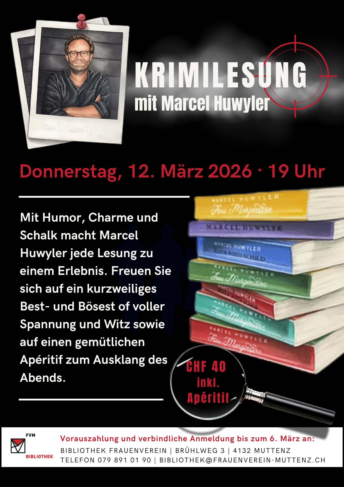 Vorauszahlung und verbindliche Anmeldung bis 6. März 2026 per Mail bibliothek@frauenverein-muttenz.ch oder in der Bibliothek.