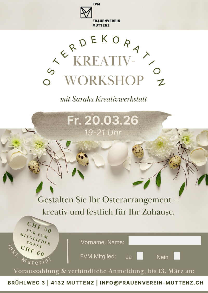 Verbindliche Anmeldung und Vorauszahlung in der Bibliothek oder unter info@frauenverein-muttenz.ch bis 13. März 2026