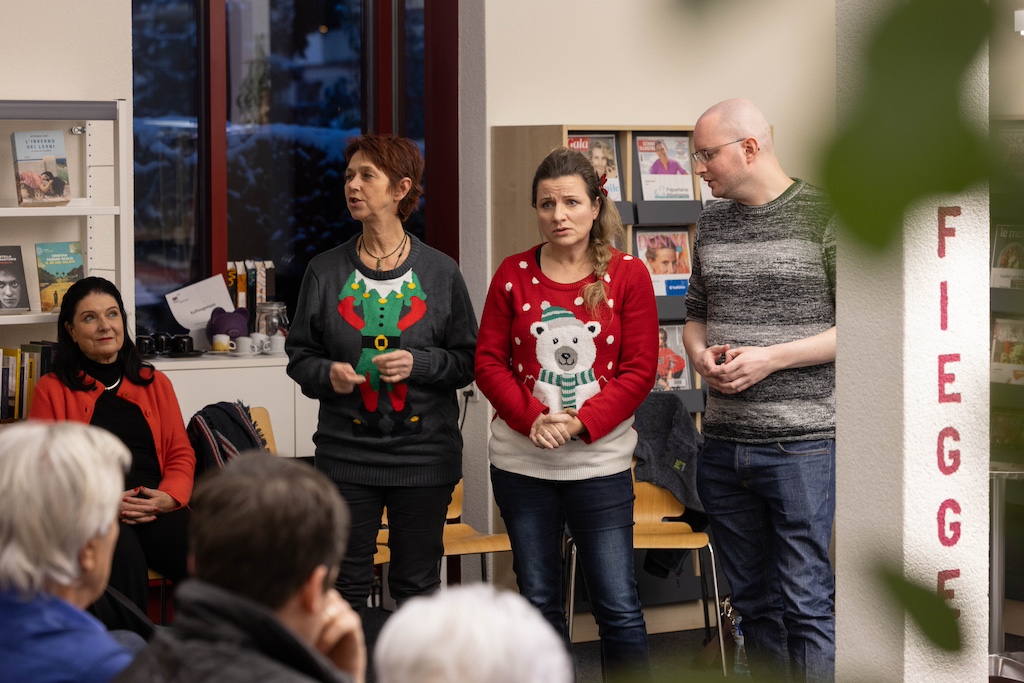 Eine wunderbare Adventslesung mit dem Basler Starautor -minu und einem a cappella Gospel Trio erlebten die 100 Gäste Anfang Dezember. Jeder Stuhl im ganzen Haus wurde dazu gebraucht, von der Brockenstube über die Büros wurde alles durchforstet, um genügend Sitzgelegenheiten zu schaffen. Es war schön zu sehen, wie viel Freude und Rührung sowohl die Lesung wie auch der musikalische Teil beim Publikum auslöste.